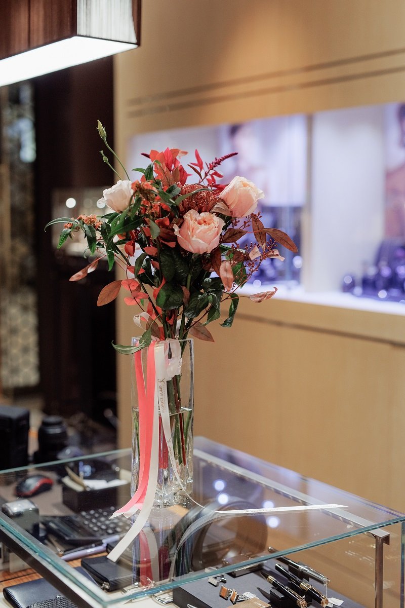 Тёплую и уютную атмосферу подчеркнули задумчивые и нежные цветочные композиции в багряных тонах от Бутика цветов и подарков Florist Gump, которые каждая гостья получила в подарок по окончании вечера.