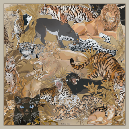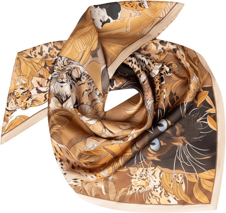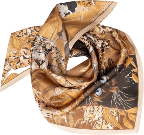 В этом платке мы собрали целую галерею кошачьих характеров: ленивый лев, игривый сервал, хмурый манул, быстрый леопард и черная пантера, которая смотрит прямо в глаза, что бы вы не