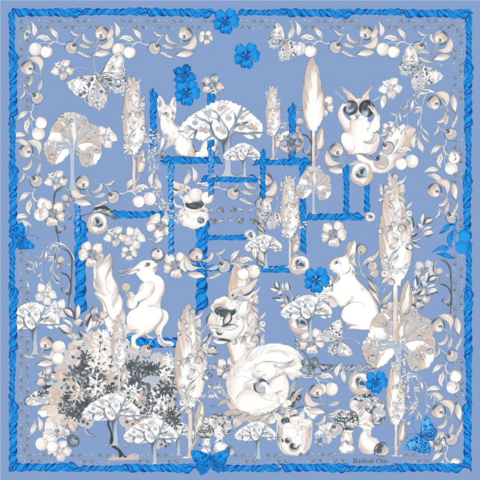 интерпретировать: кролик ведёт в мир игры, белка хранит лёгкость, лиса придаёт платку ауру