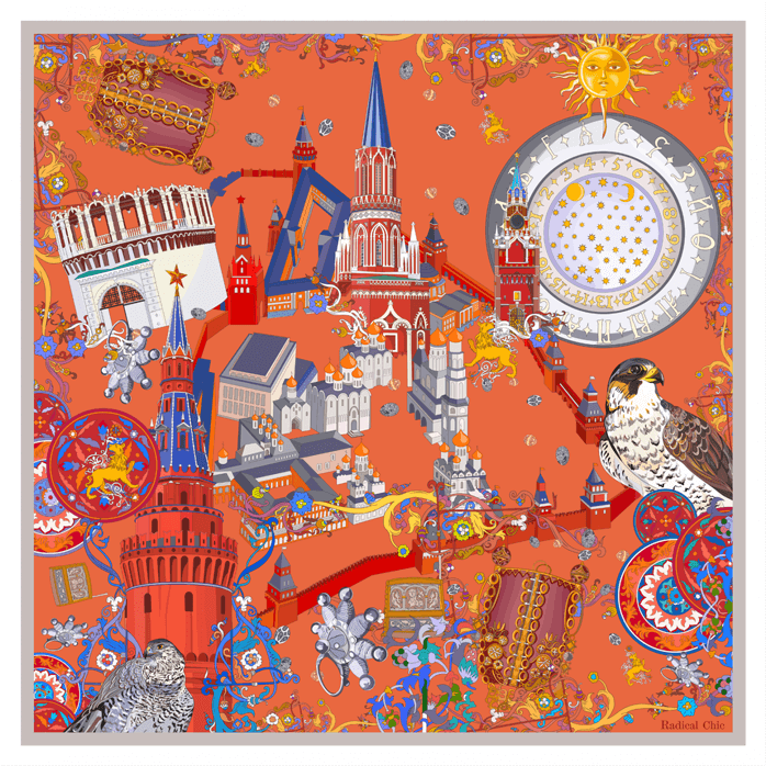 Дизайн платка создан в коллаборации с Музеями Московского Кремля.