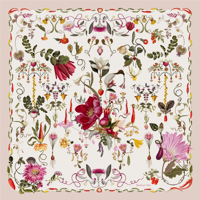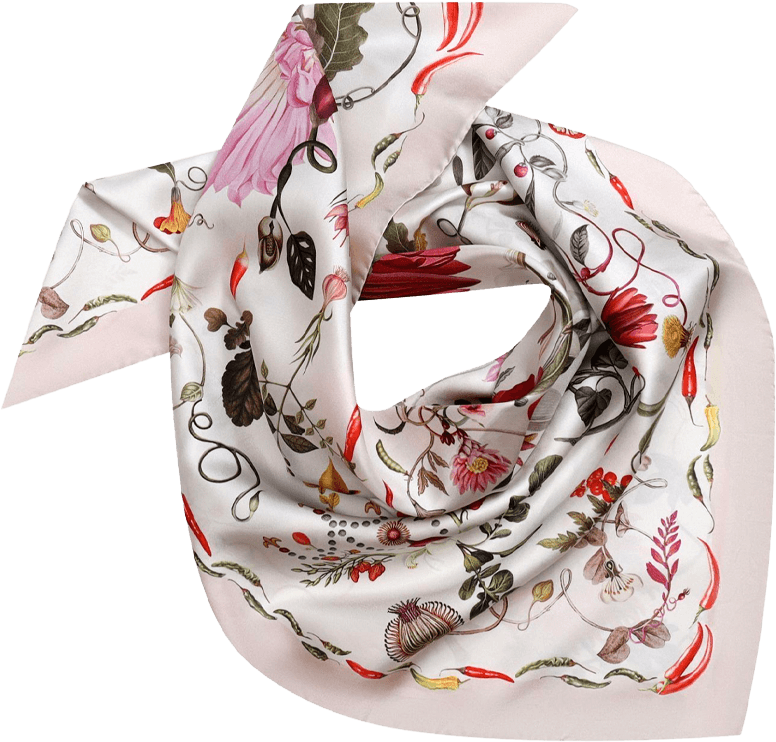 Жгучесть перца определяется содержанием капсаицина — вещества, стимулирующего выработку эндорфинов, что делает остроту физиологически узнаваемой и научно измеримой. Платок «Ботаника» опирается на эти свойства растения, превращая его ботаническую вертикаль, цвет и структуру в основу орнаментальной системы.