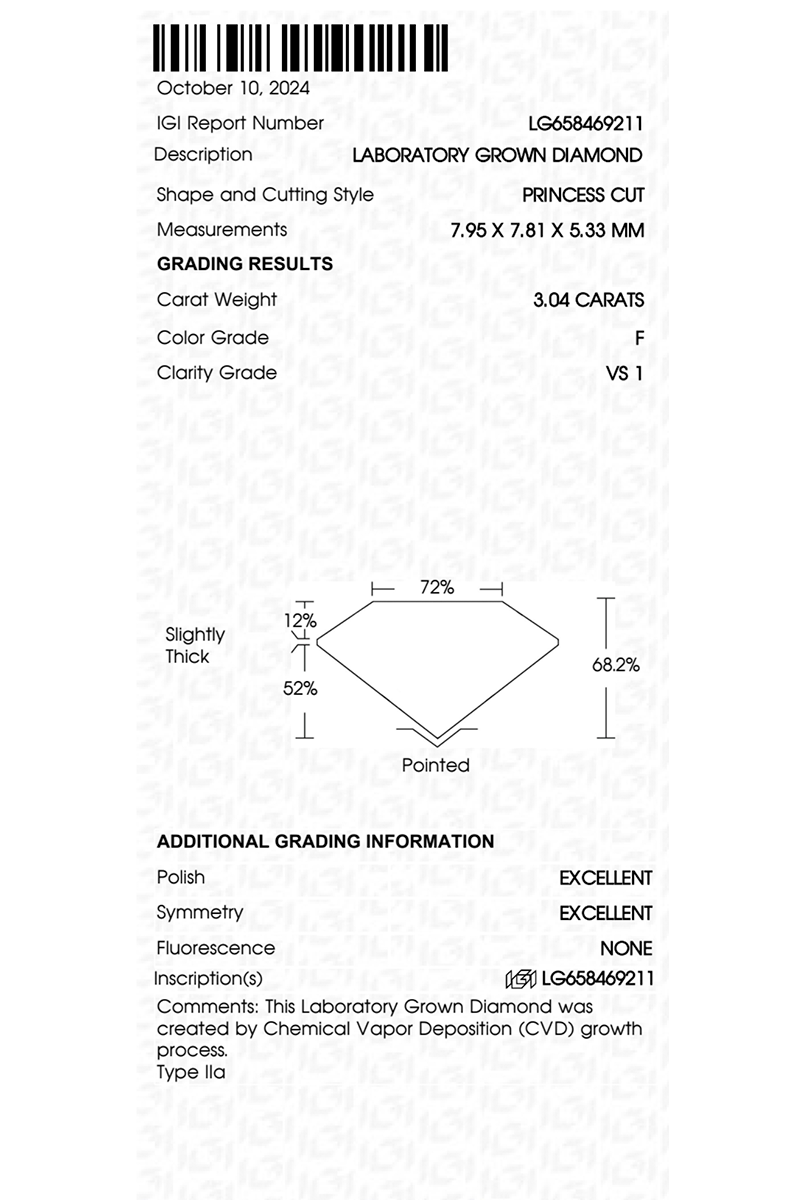 Если Вы обладаете лабораторным бриллиантом, то Вы получаете: