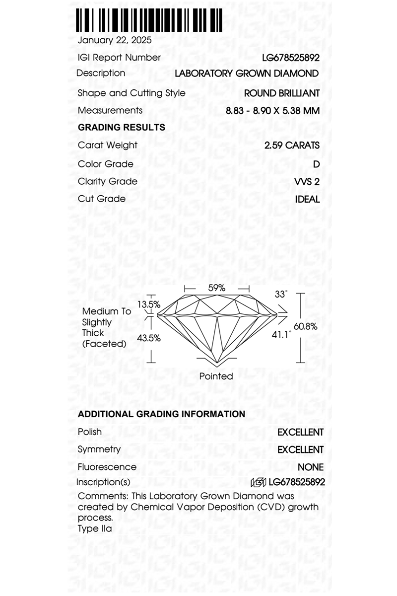 Если Вы обладаете лабораторным бриллиантом, то Вы получаете: