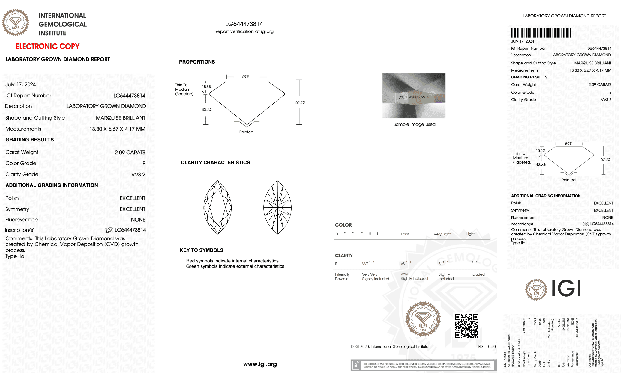 Лабораторно выращенные бриллианты – это бриллианты, которые производятся в контролируемых технологических процессах, в отличие от природных бриллиантов, которые создаются геологическими процессами и добываются горнодобывающим способом. В отличие от имитаций бриллианта, сделанных из внешне похожих небриллиантовых материалов, лабораторные бриллианты состоят из того же материала, что и природные бриллианты — чистого углерода, и имеют идентичные химические и физические свойства : кристаллическая структура, твердость – 10 по шкале Мооса, отражательность, теплопроводность, оптические свойства, плотность, показатель преломления и прочее.