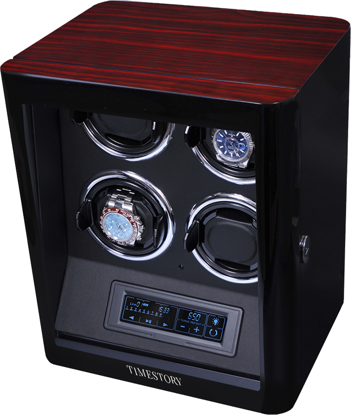 Истинные ценители часов оценят четыре режима подзавода в шкатулке, управляемые на торцевой части рядом с крутящимися кольцами. Продуманная система выбора режимов вращения сможет завести любые часы любой сложности. Достаточно просто повернуть тумблер на нужный режим, и часы будут автоматически подзаводиться. Можно выбрать вращение не только по часовой и против часовой стрелки, но и попеременное вращение.