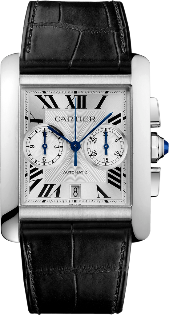 В часах Tank MC легендарный стиль Дома приобретает ярко выраженный мужской характер. Крупный квадратный корпус с малой секундной стрелкой на циферблате придает этой модели силу и элегантность. Безупречную работу автоматического калибра 1904 MC, изготовленного на Мануфактуре Cartier, можно наблюдать через прозрачную заднюю крышку из сапфирового стекла. Часы Tank MC, механизм с автоматическим подзаводом, калибр 1904-CH MC, хронограф. Корпус из стали, граненая заводная головка из стали украшена граненой синтетической шпинелью, посеребренный гильошированный в технике flinque циферблат, стрелки в форме мечей из вороненой стали, сапфировое стекло, ремешок из полуматовой кожи аллигатора черного цвета, двойная регулируемая раскладывающаяся застежка из стали, окошко календаря в положении “6 часов”, задняя крышка из сапфирового стекла. Высота корпуса: 11,7 мм. Водонепроницаемость до 30 метров.