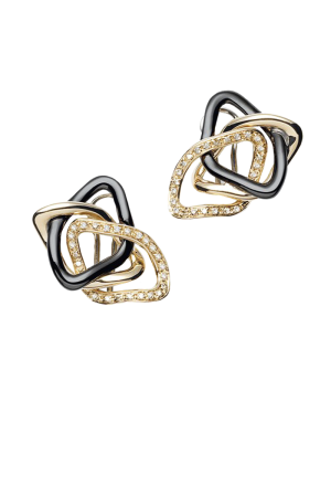 Переплетения линий, сотканных из драгоценного металла формируют кулоны, серьги, кольца и жесткие браслеты. Неожиданное решение в виде чёрных металлических вставок придаёт изделиям ещё большую выразительность, создавая ощущение безупречного стиля.